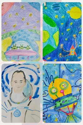 Выставка рисунков ко Дню космонавтики