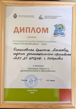 Кристина Алексеевна стала победителем краевого конкурса «Педагогический дебют — 2026», получив диплом I степени 🏆.